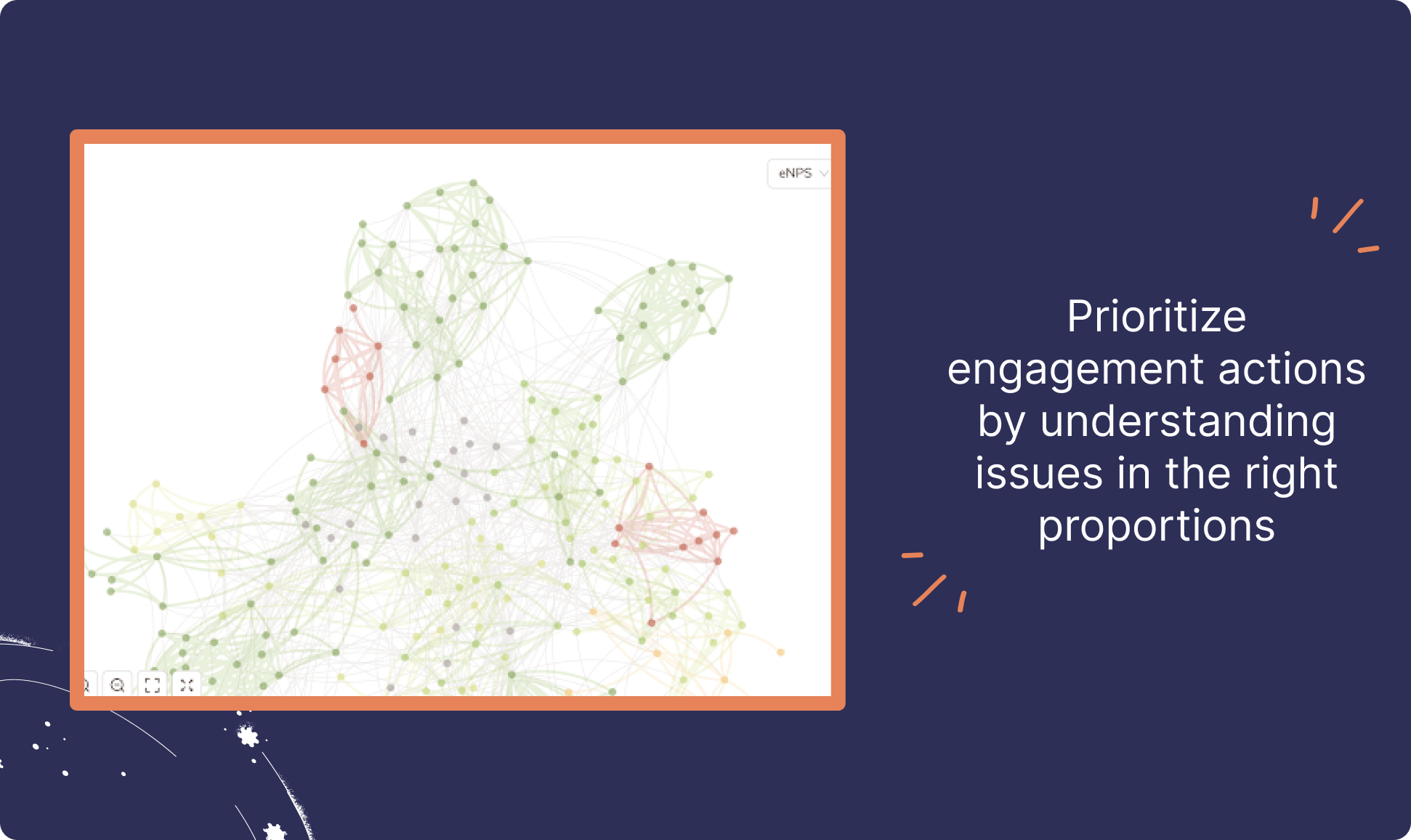 For example, combining your pulse survey data with Organisational Network Analysis empowers the leadership team to see trends in employee wellbeing beyond the official team structure. Managers are able to identify clusters within an organization that may need extra help in understanding goals, getting support, or simply managing work-life balance.
