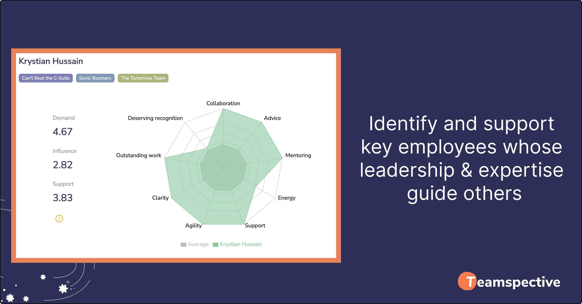 Increasing headcount effectively requires not only optimizing collaboration between teams, but also ensuring that new hires are onboarded into company culture and receive sufficient support. The best way to know if employees are supported enough in all key areas is to collect continuous engagement and wellbeing data, monitor it systematically, and take actions before issues escalate. Learn how this can be done with Teamspective’s pulse surveys.
