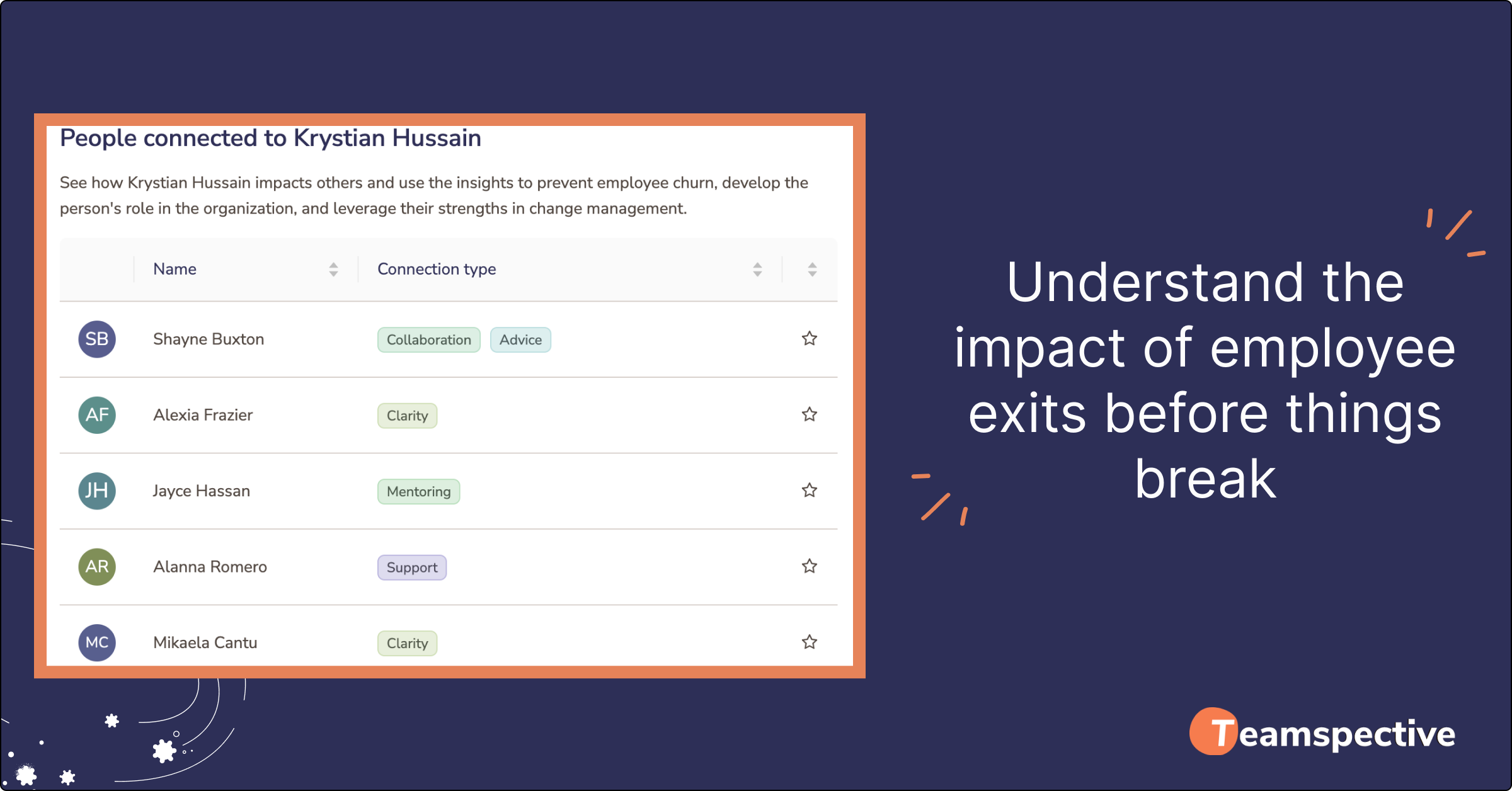 - Which teams’ collaboration will suffer as the connecting person leaves?