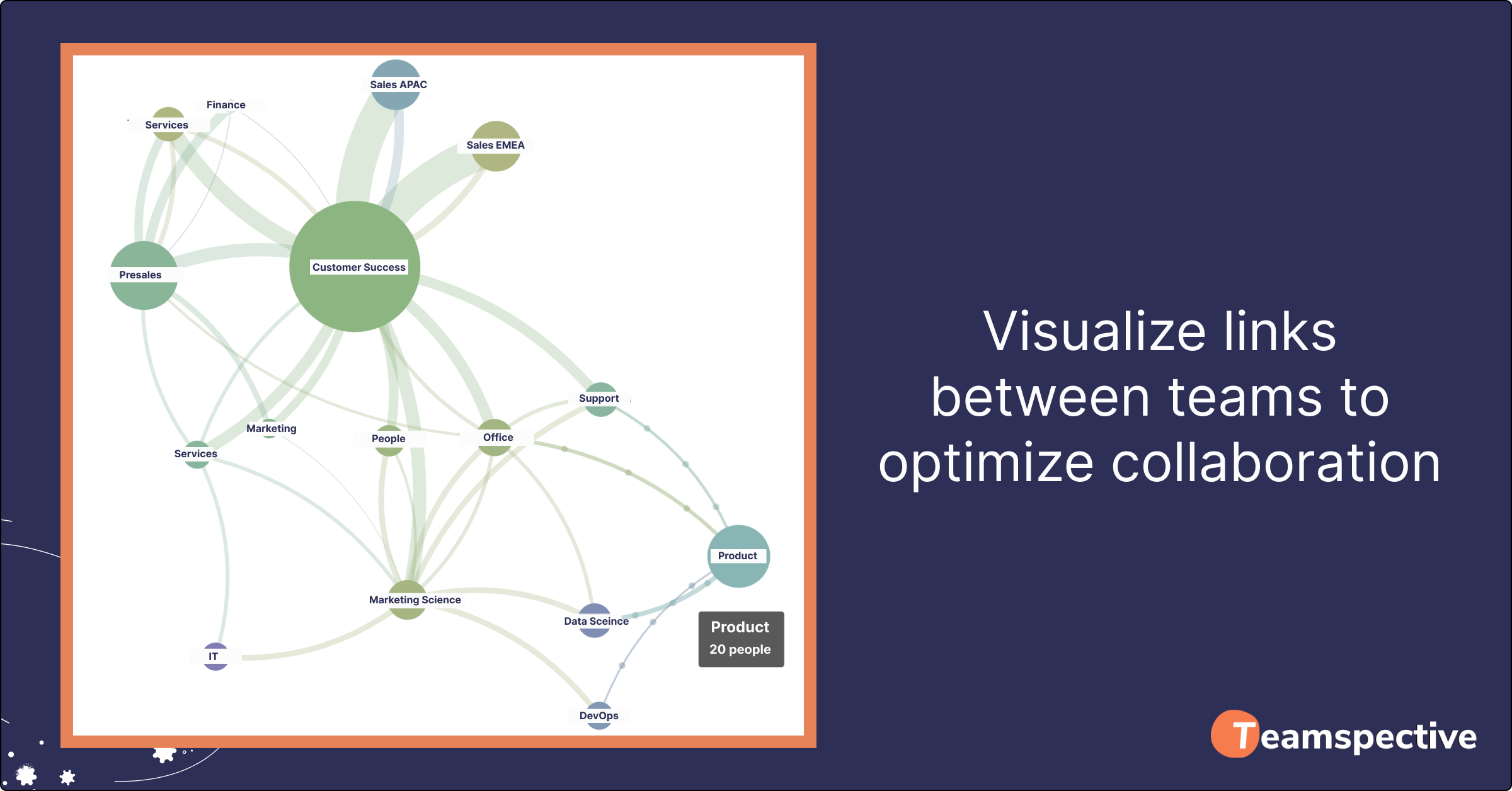 With ONA, one can visualize links between teams to identify areas for improvement and support the teams that are left too detached. You can ensure that new teams fit well into the organization and existing ones are able to adapt their ways of collaborating with others.