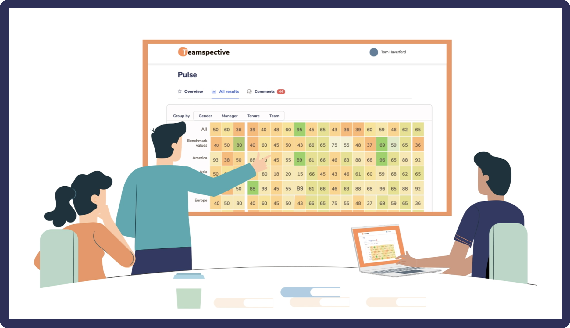 Teamspective’s smart pulse surveys give leaders always up-to-date insights into the most pressing issues in each team.